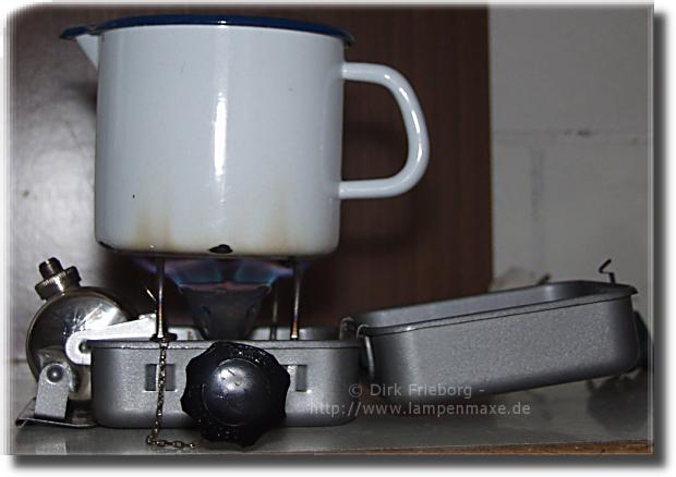 Ich habe ein paar Probleme mit der russischen Anleitung. 2 Jahre Russisch-AG (1986-1988) damals auf dem Gymnasium sind für Praxisgebrauch doch ein bisschen wenig… Vorheizen mit Spiritus ist klar. Verkauft wurde er mir auch als Spirituskocher, aber der Versuch war nicht überzeugend. Petroleum brannte besser, aber am besten geht bislang Waschbenzin. Wie sich herausgestellt hat, ist es tatsächlich ein pumpenloser Benzinkocher.